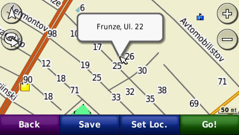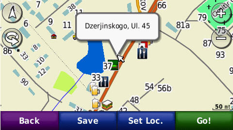 Full address search up to the house number - screenshots from GPS Garmin Nuvi765T: