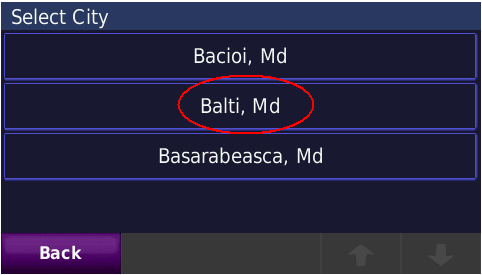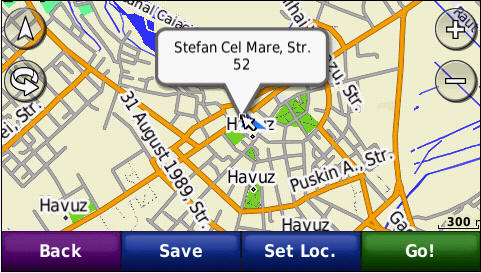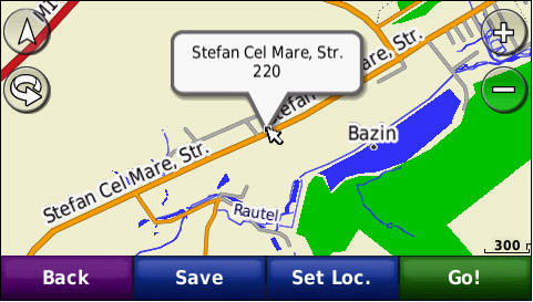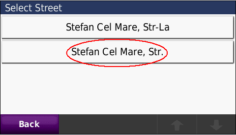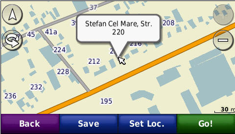 Cautarea adresei complete - pana la numar de bloc - imagini de pe ecranul GPS navigatorului Nuvi765T: