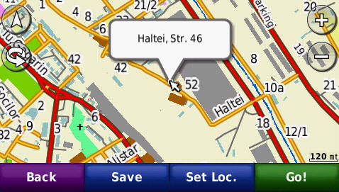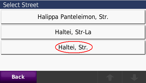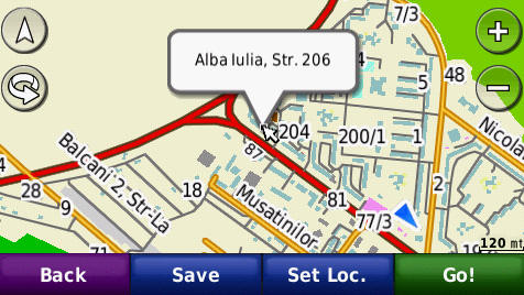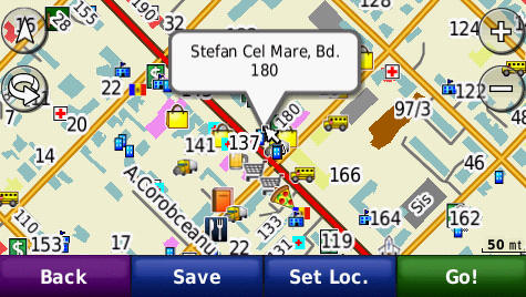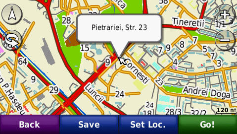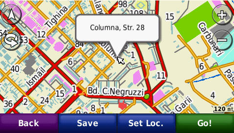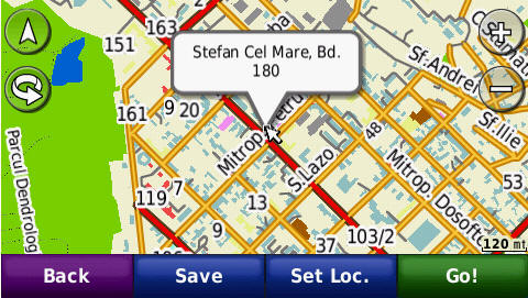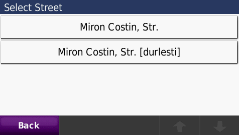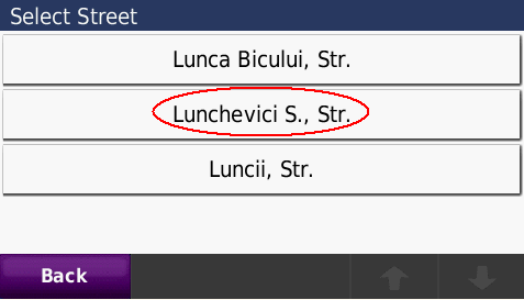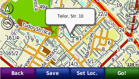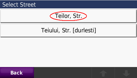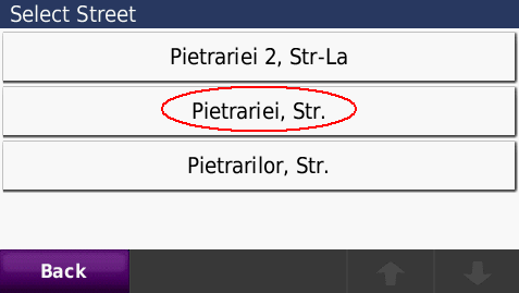 Cautarea adresei complete - pana la numar de bloc - imagini de pe ecranul GPS navigatorului Nuvi765T: