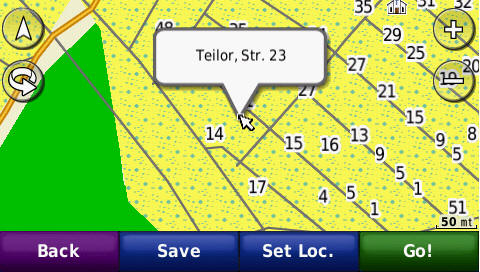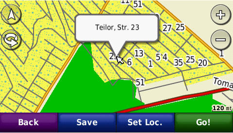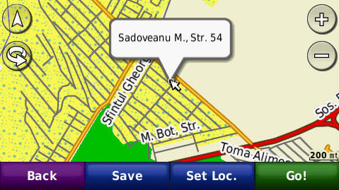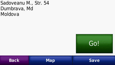 Cautarea adresei complete - pana la numar de bloc - imagini de pe ecranul GPS navigatorului Nuvi765T: