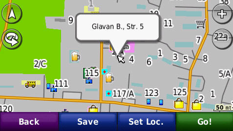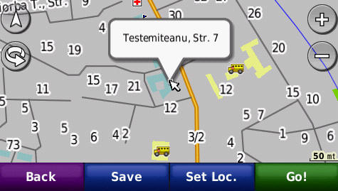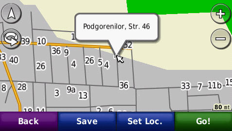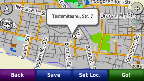 Cautarea adresei complete - pana la numar de bloc - imagini de pe ecranul GPS navigatorului Nuvi765T: